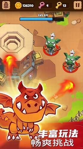3、击败恶龙,成为一名屠龙者。更多的挑战等着你,制定不同的进攻策略,不同的敌人使用不同技能。