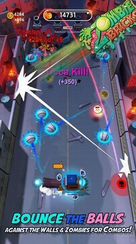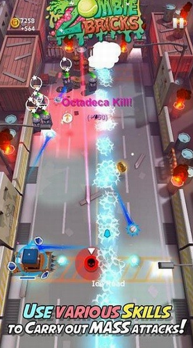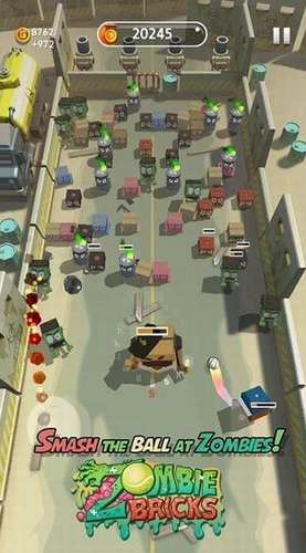 3、通过向左和向右移动来躲避那些僵尸攻击并向它们击球以摧毁它们。