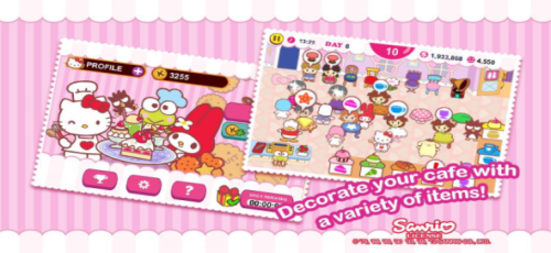 3.你可以选用以漂亮Kitty为主题的家私装饰场景,随意装点您的咖啡店
