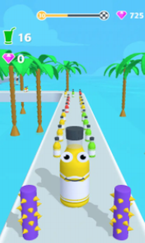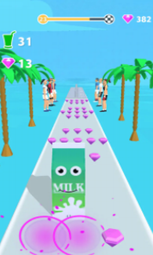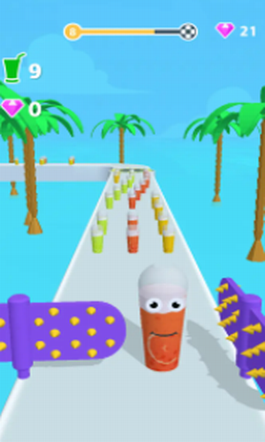 2、碰到其他颜色的果汁,你会变小。到达终点时,你的果汁越大,就会获得越多的钻石。