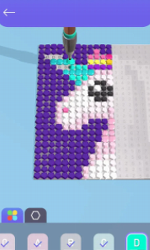 凡是你能想到的东西,你都可以用钻石...画出来!镶钻大师中文版是一款休闲益智类小游戏。玩家在游戏中可以对图案进行镶钻处理,将原来的灰色色板填充上镶钻的颜色,画出一幅美丽的图案。游戏的画面简洁,玩法简单,欣赏充满了独角兽、心、蛋糕等的快乐画布。按画布周围的钻石像素,让美丽的图像变得栩栩如生。给钻石蛋糕画上钻石糖衣,给漂亮的礼服带来生机,凡是你能想到的东西,你都可以用钻石...画出来!