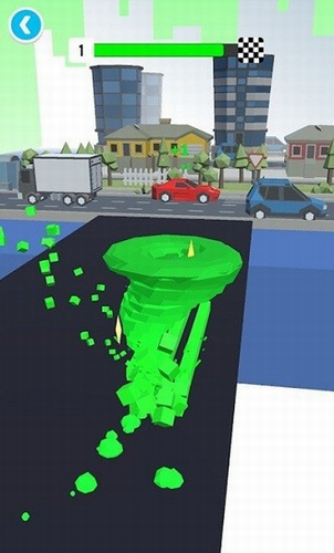 2、终点是城市,你需要滑动屏幕控制旋风的移动,破坏城市中的更多物品。