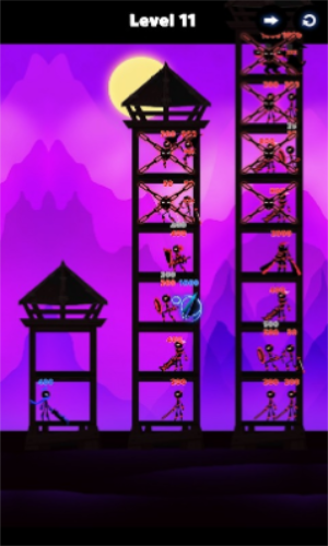 火柴人英雄登塔战争去广告版是一款休闲闯关解谜类游戏。玩家在游戏中需要挑战不同的高塔上的敌人,击败敌人才能顺利的进入下一关,高塔越高难度越大,奖励也会越丰富,更多精彩有趣的玩法等你来体验,使用自己的技术操作来完成挑战消灭更多的敌人从而获得胜利。发挥你的策略能力完成各种挑战,选择一个合适的战斗方式能更加轻松的通关。每个敌人都有自己的特点,你需要制定一个合理的战斗顺利将他们全部消灭,还有很多关卡可以解锁。游戏中还有大量的小惊喜等待玩家的领取,你需要有很多的方式来成长下去,你就是真正的火柴人大师,来一起学习新的战斗竞技乐趣,想要挑战的小伙伴快来试试吧。