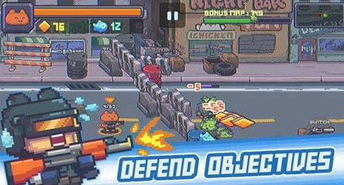 1、猫咪枪手大战僵尸游戏的玩法类似大逃杀的像素射击玩法非常的不错,很有趣味的射击效果。