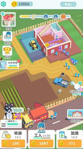 2、设计自己的房子,不同的房子需要金币来解锁,加快你的赚钱速度。