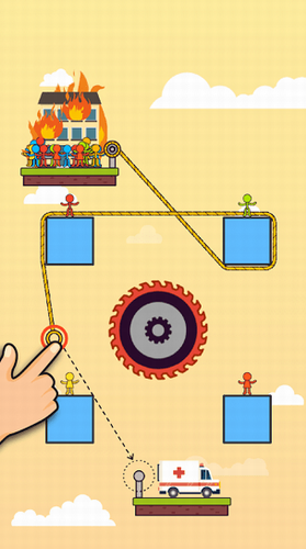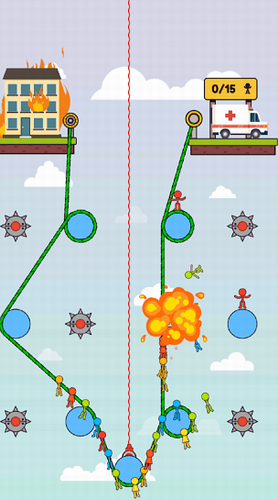 火柴人绳之谜题最新版是一个全新的具有挑战性的益智游戏。在游戏中会有许多的关卡,玩家操控着绳索,只有准确的放到该放的齿轮上面, 火柴人才能顺利的通过,快速救出被困的火柴人,将他们成功的运送到救护车上,就能快速完成闯关,赢得更多属于你的各种奖励,越到后面越难,需要你开动你的脑筋来想办法完成,快来试试看你能闯多少关吧!