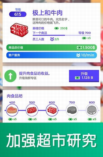 1、使用金币不断的扩建土地,增加超市的面积规模。