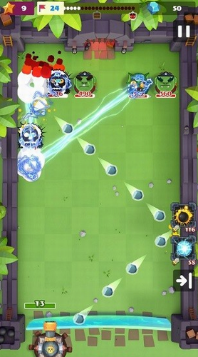 1、利用弹射系统对敌人进行有效的攻击,弹丸可以多次攻击入侵者。