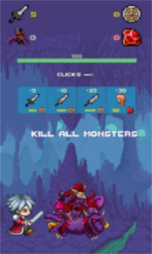 点击勇士无限金币版是一款像素风格的动作游戏。你将控制以为勇士与敌人战斗消灭森林怪物,可以在排行榜上查看你的成就。可以通过增加他们的属性,才能和能力进行升级。这些战士可以配备独特的物品,可以从敌人身上掉下来。游戏之中的玩家们将会体验到一场极致刺激畅爽的战斗冒险的体验,感受这个畅爽刺激的战斗冒险的极致乐趣。多种场景冒险,前期上手简单,但是后期会越来越难,根据不同的技能帮助你获得更大的优势,喜欢就来下载体验吧。