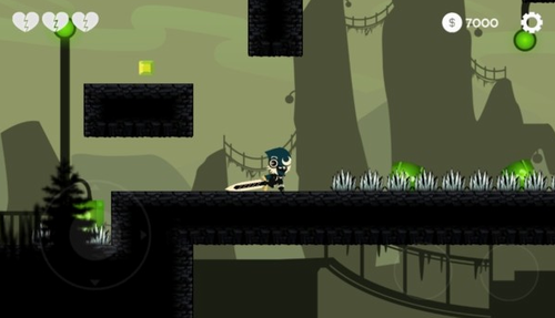 1、在这个冒险游戏中,你需要显示熟练的攻击和跳跃按钮,以通过所有的陷阱。