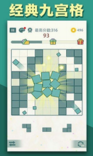 2.经典九宫格棋盘,创新式方块消除玩法,趣味无穷。
