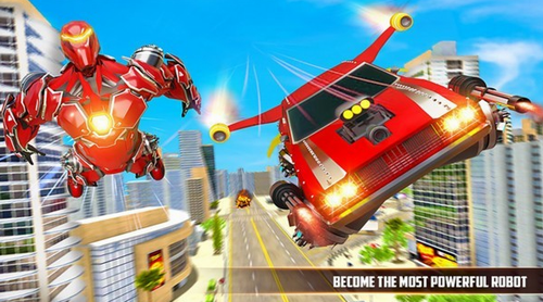 3、通过在制作游戏的飞行机器人中的快速肌肉车,飞马悬停在未来的城市。