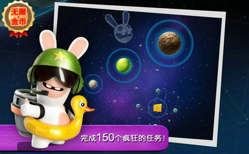 疯兔大爆炸是第一款移动设备上基于真实物理的疯兔游戏,用你的手指带领疯狂兔子遨游宇宙吧! 疯狂兔子古怪幽默,太空牛、奶酪星球、不明飞行物……你将随着疯狂兔子一起疯狂尖叫!把疯狂的兔子送入太空使用喷气背包和行星引力来控制它的轨道。加速会消耗燃料。控制战略。新颖的游戏玩法采用动画卡通的画风进行打造,使得整体的游戏趣味性大大提升,感兴趣就来看看吧!