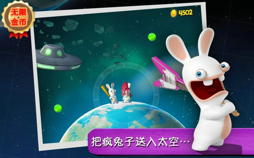2、弹跳太空鸭,撞击太空牛,或者让疯狂兔子飞向太阳。