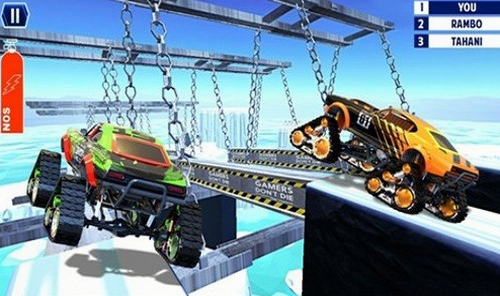 1、加速冲过腾空点并绕过障碍物,冲入车流,靠墙行驶并通过高速氮气加速区。