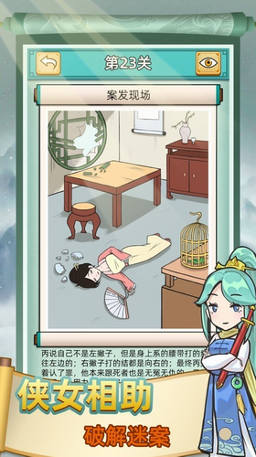 3、你能看到各种古色古香的画面呈现在眼前,随着你尖锐的眼神找到那些凶器并成功的锁定凶手。