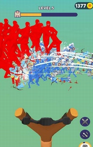 2、弹弓!将骑士、弓箭手、骑兵团和其他火柴人战士扔到战场上。
