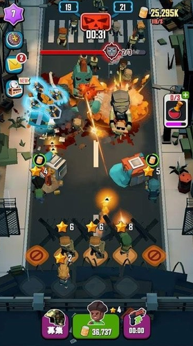 1、画面以卡通漫画为主,像素类的人物设计,战斗场景十分精彩刺激,带你感受打击僵尸的快感。