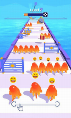 花几分钟时间,随时随地完成一轮跑果冻人挑战。奔跑的果冻人安卓版是一款当下比较受欢迎的竞技跑酷类游戏,通过灵活的操作来控制屏幕中的果冻人向前奔跑,一路上会遇到各种各样的机关陷阱,同时也有能够让你果冻人数量瞬间得到增加的门,以庞大的果冻人群冲向终点,人数越多,碰到对手的时候都没有任何的压力,操控好你的果冻人来进行闯关,奖励丰厚,玩家可以用这些来进行解锁新的皮肤,在游戏中解锁新的剧情,对奔跑的果冻人感兴趣的小伙伴快来体验下载吧。