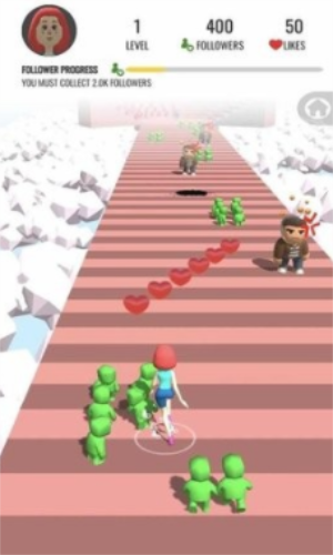 影响者酷跑无限金币版是一款非常好玩的休闲跑酷游戏。玩家在游戏中控制自己的角色,不断前进,越过一个个障碍,还要在关卡中吸引更多的粉丝,让他们和你一起前进,玩家需要收集尽可能多的粉丝,以便在最后一轮舞蹈中最终让他们成为你的实际粉丝。游戏里有很多丰富的玩法和关卡任务,玩家们可以任意的挑选,需要在道路上不断的收集金币和道具,只有跑的更远,分数才会越高,超多特色化地内容,趣味十足的冒险玩法,创意十足的游玩趣味挑战体验。画面设计精致漂亮,超有趣的内容需要你进行各种选择。感兴趣的玩家朋友赶紧下载吧。