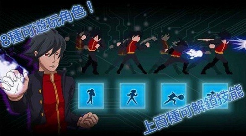 2、游戏有8个角色可供玩家选择,每个角色的技能和固话技能都不同。