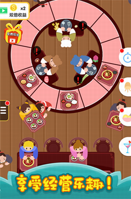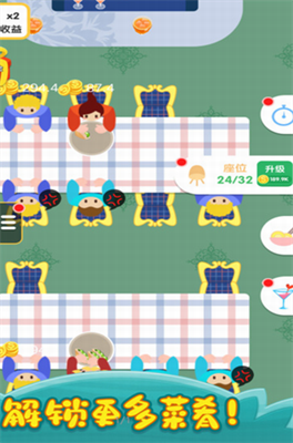 2、解锁更多的食物在你的餐厅菜单中,顾客们有更多的选择,你的收入也会大大提升的。