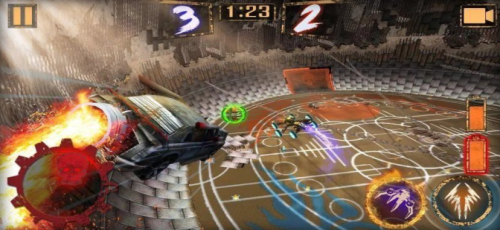 3.碰碰车们都能装备炫酷的冲刺设备,氮气冲刺加速,突破射门,那势头无人能挡