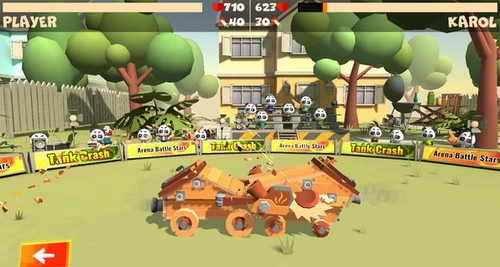 2、在竞技场中坦克车可以互相撞击,改装你的坦克车,上面加装一些武器用来攻击对手。