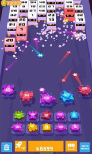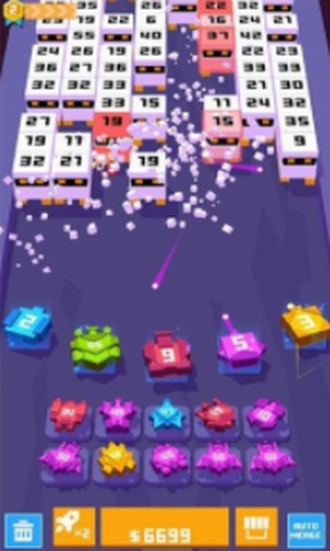 避免让砖块到达底部,不然游戏就会结束。合并碎砖机破解版是一款合并+放置玩法的休闲小游戏。游戏中,玩家需要通过不断地合并防御塔来提高最前方5个防御塔的威力,只有成功粉碎所有方块游戏才算过关。玩家孩子需要打碎砖块即可,打碎的越多,积分奖励就越多,获得的红包奖励就越丰厚。玩家一定要操控好角度和力度哦,感兴趣的小伙伴不要错过哦,快来和我一起下载吧!