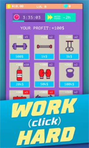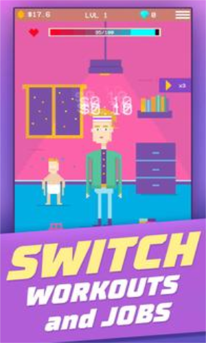 3.不断的赚钱可以解锁更多道具,完善自己的健身房,提高社会的知名度