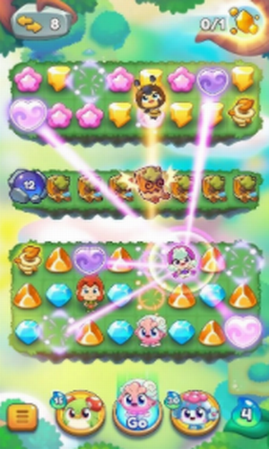 2、一路上,你将收集可爱宠物""芽芽""、与精灵游玩、对抗闇黑小队,当然也会配对甜蜜珠宝;