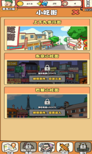 1.升级摊位,对应它赚金币速度就变得更快了,你整体的赚钱速度也就能最大限度提升