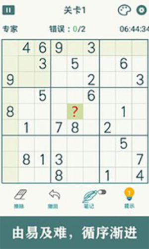 3.完成一定的数独题目,自动解锁下一关,成为数字九宫格数独大师