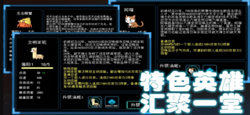 3.这里的所有角色都是可以进行升级和扩充的,通过扩充更多的角色,你将在战斗的过程中有更多的选择