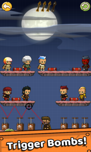 不断的冒险,并与您的朋友一起创造奇迹,完成挑战。弓箭先生破解版玩家在游戏中体验射箭闯关的玩法,不同的游戏关卡有着不同的位置构造,玩家需要合理的安排自己的射击顺序,将关卡中所有的敌人都消灭,游戏中还有辅助的道具,例如炸弹,也可以在墙壁上反射,玩家需要操控自己的火柴人使用各种弓箭和敌人进行射击对战,完成任务解锁火力更加强大的弓箭,越往后难度也会越高哦,赶快来下载挑战吧!