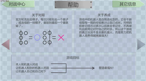 游戏中的机器人是自我进化型的。它会不断吸取每一局的经验教训让自己成长。同样的招数它经历过多次以后就会牢记住,不再被坑且能用它对付自己的对手。所以这个游戏的真正玩法不是去机器人,而是努力把机器人培养得越来越强大!