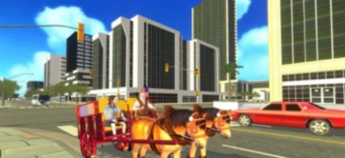 3.这里的交通是一辆巨大的马车。你开车去完成城市里的任务。这是一次非常有趣的经历