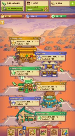 1、简单有趣的放置养成玩法,选择你的超市开在人流量大的路段,轻松赚到更多利润;