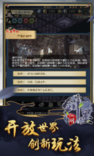带你体验文字武侠世界的魅力,喜欢的朋友不要错过了!剑墨江湖破解版是一款国风文字武侠放置挂机玩法的rpg手游,开服奖励超多!在开放式的世界给予你全新的武侠人生!真实江湖,自由修炼,成为一名大侠,学习武学秘籍,任意的搭配武功,前往战斗中释放技能,与知交好友携手闯荡江湖匡扶社稷的故事。游戏主线历经洛阳、开封、商丘,即是北宋西京、东京、南京,而后,北至西夏,南到大理,攀武学巅峰,战八方武林,守土九原,护持百姓,处江湖之远而忧其君,市井有谁知国士,江湖天下两峥嵘.