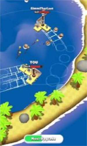 2.只有收集更多的木材,我们才能建造一个更大的木筏,同时射杀对手的木筏,并小心你对手的攻击