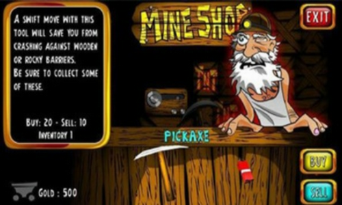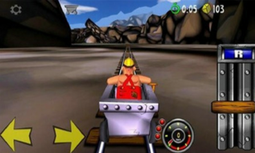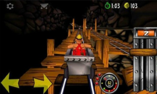 游戏中,玩家控制一位淘金者乘坐的矿车,你的任务是利用重力感应倾斜屏幕尽量多的收集宝石,穿过各种破烂铁轨并且避开障碍物,寻找令人兴奋的路径探索整个矿山,赚取更多的黄金!