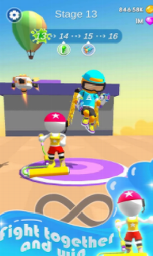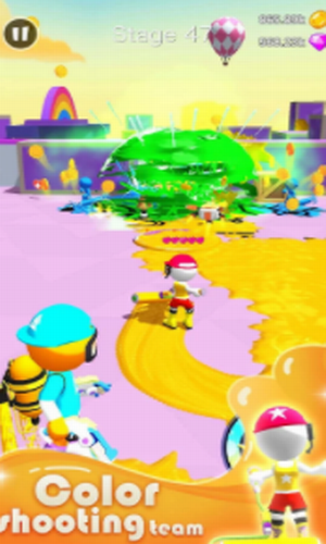 2、在这款十分可爱的卡通游戏里面,对战画面有着动感的游戏色彩;