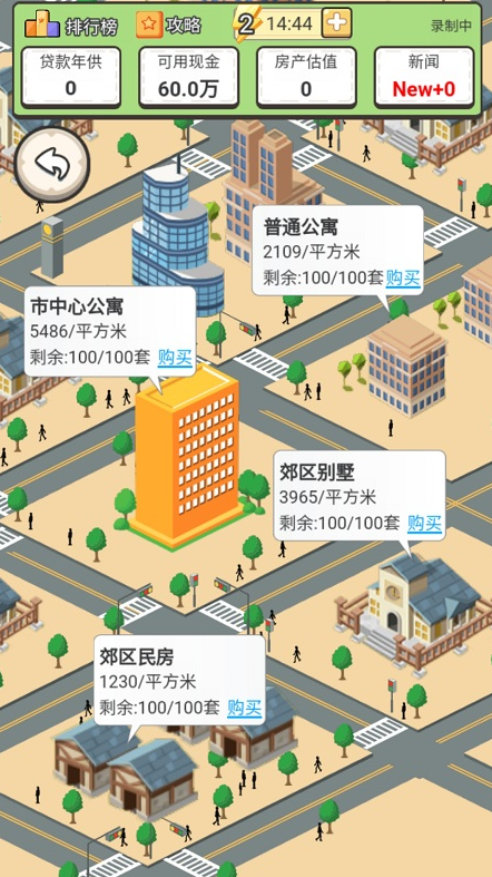 1、去发展出属于你的楼盘,带领你的房地产事业去发展,去赚取更多的金币吧
