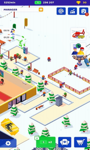 接手滑雪场中令人兴奋的休闲建筑模拟游戏空闲滑雪大亨,成为山中之王!现在,把一些即将关闭的小屋变成受欢迎的必看场所!