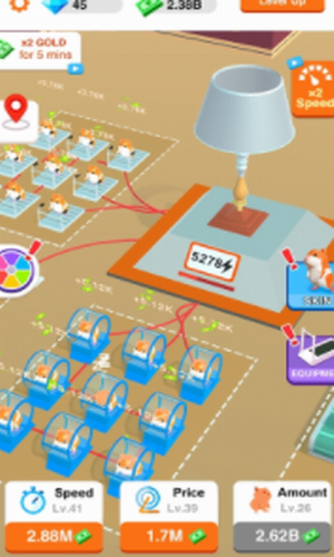 看着它们从进来到发电到累趴的过程,真的很魔性。仓鼠发电厂破解版是一款充满童趣的休闲可爱的游戏。这款游戏中,玩家可以利用好可爱的仓鼠们进行发电,让它们跑起来,纯天然的绿色电力就这样源源不断的输出,完成更多的发电任务,你拥有一家属于自己的电力工厂,不过是借助仓鼠的力量进行发电,仓鼠发电厂中文版拥有简洁清新的画面风格,搭配轻松易上手的放置玩法让你仿佛沉浸其中,喜欢的话赶快下载来玩吧!
