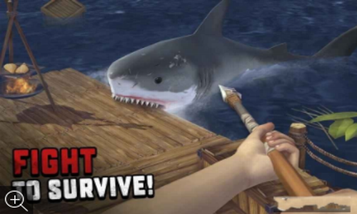3.当鲨鱼和游尸来进攻你的木筏的时候,需要你利用制作的武器来战斗,保卫你生存的根本。