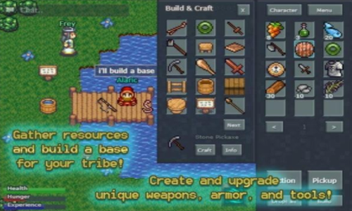2、还可以建立自己的房屋和商店,或者拿起武器,在这里去寻找你的冒险之地为自己收集更多的材料;