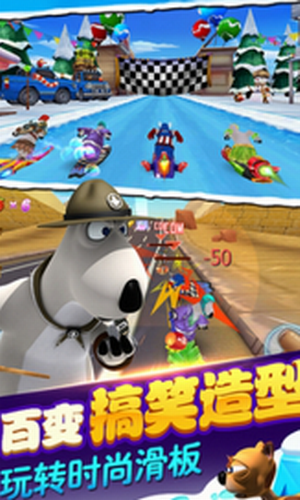 倒霉熊极速狂飙惊艳上线,让你的滑板飙起来!韩国国民级动漫“倒霉熊”风靡全世界,由原版动漫改编而来的国内首款手游震撼上线,顶级3D竞速游戏倒霉熊极速狂飙热血来袭,一起来和倒霉熊飙滑板吧!