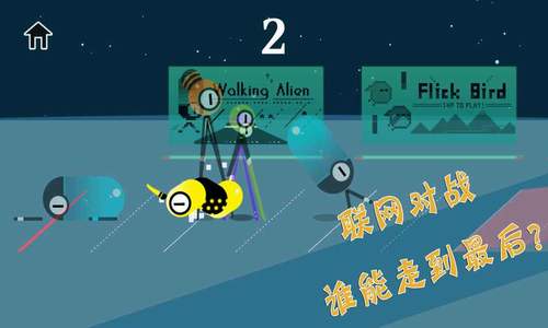 走走外星人最新版是一款以外星人为主题进行打造的全新休闲类游戏,玩家作为一个外星人,因为腿太长,需要玩家不断的细微的操作来移动,游戏中我们需要控制外星人来左右交互两条腿进行走路,但同时还有兼顾稳定性,从而要保护外星人行走时不会摔倒,最终走的越远则得分越高,同时游戏还支持双人同屏对战甚至是联网对战,感兴趣的朋友快来下载吧。