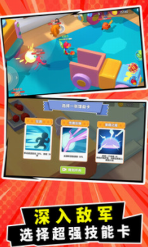 2、挑战性关卡等你来完成,深入敌军,选择超强技能卡。